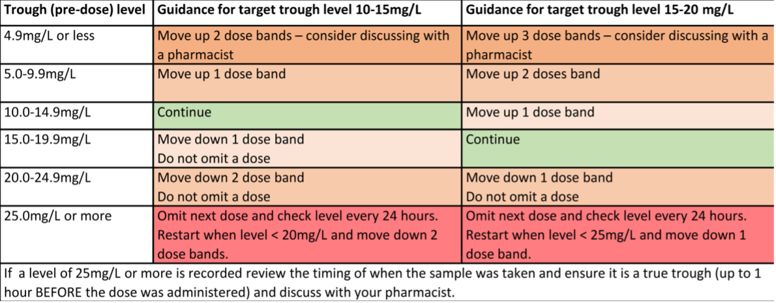 • Monitor trough every 48-72 hours or as advised by the pharmacist