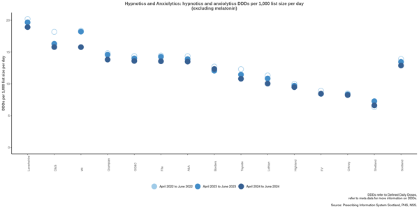 NTI: Hypnotic and anxiolytic (excluding melatonin) defined daily doses (DDDs) per 1,000 list size per day (all age groups included)