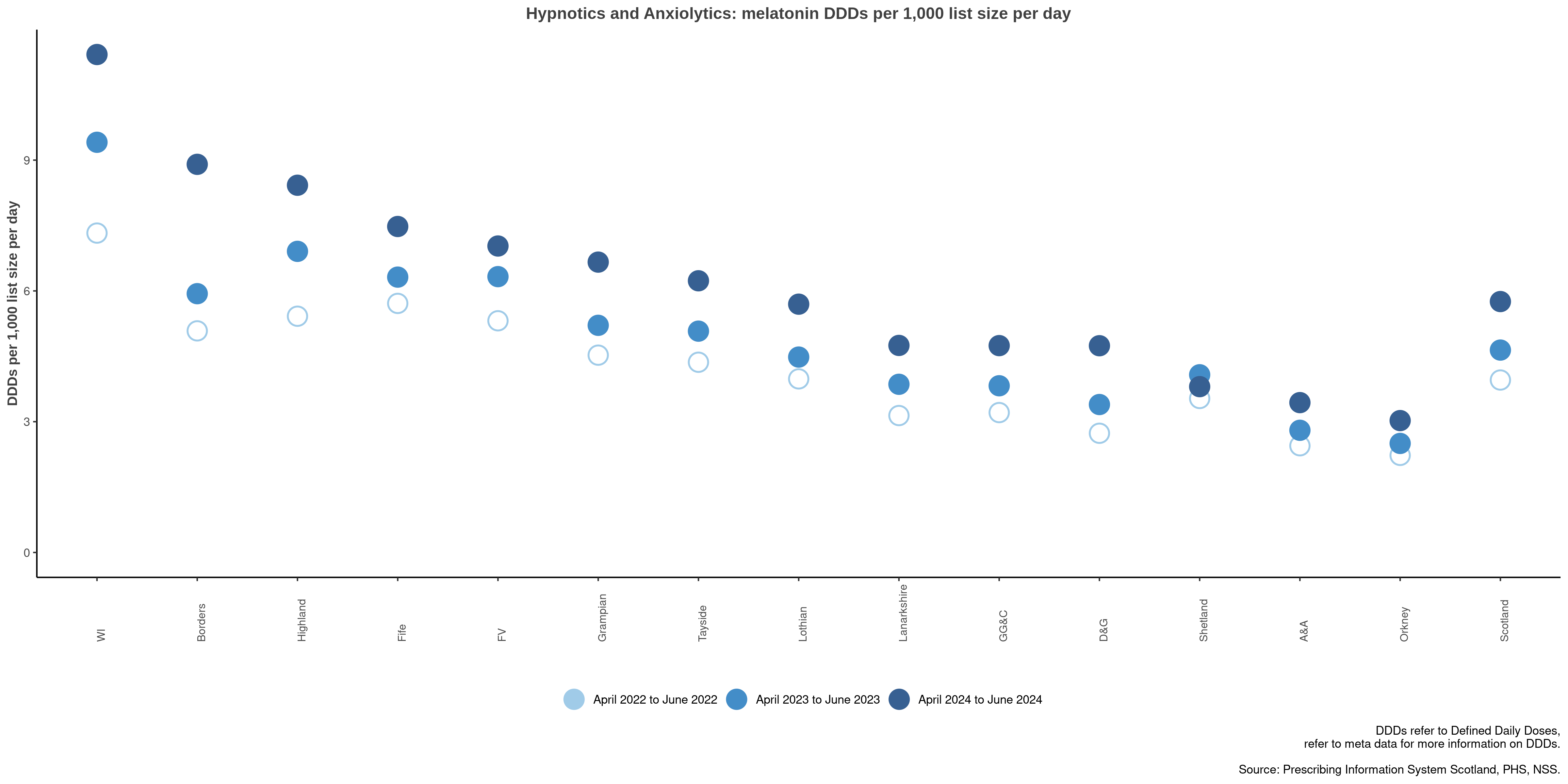 NTI: Melatonin defined daily doses (DDDs) per 1,000 list size population per day (all age groups)