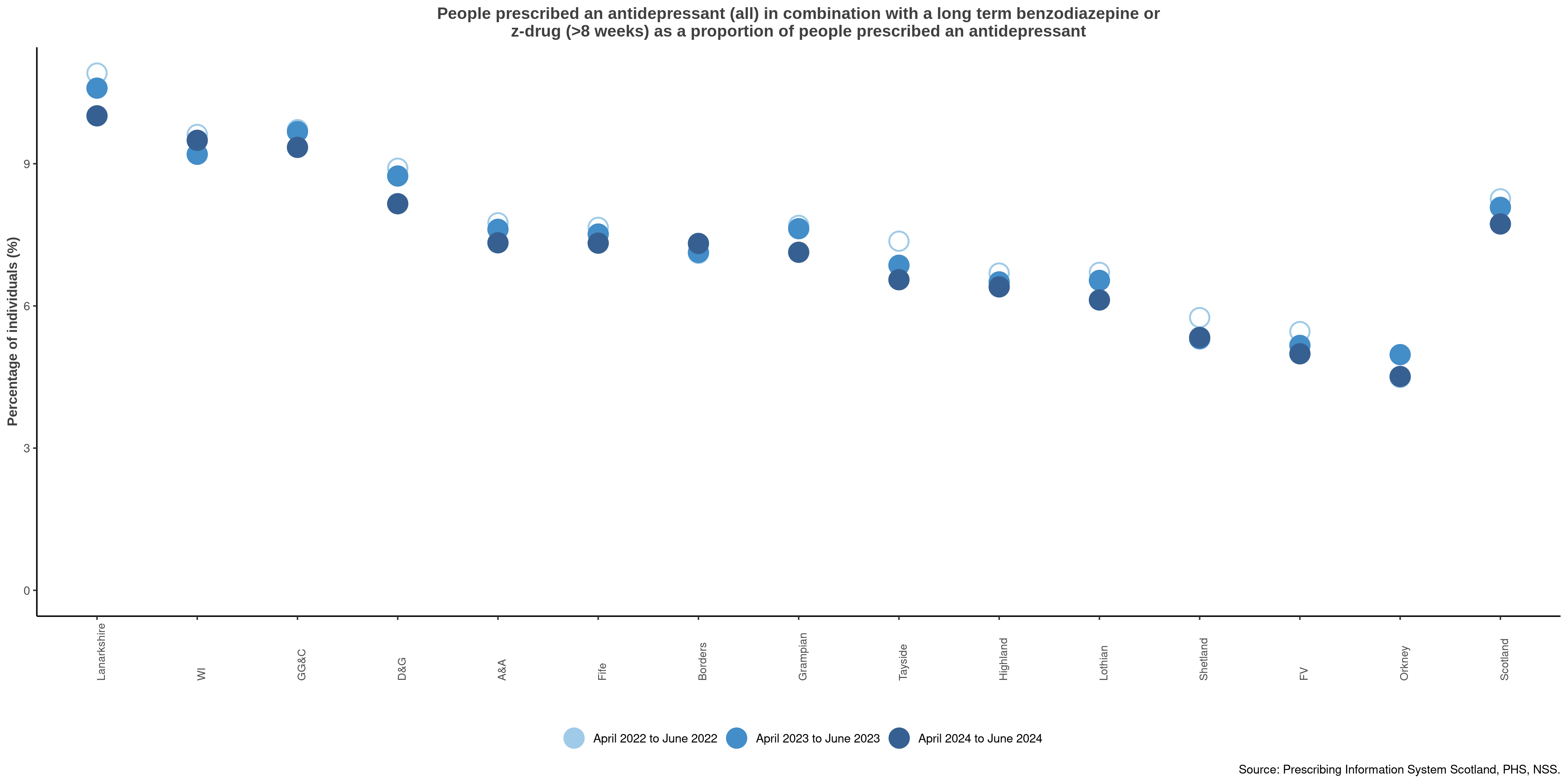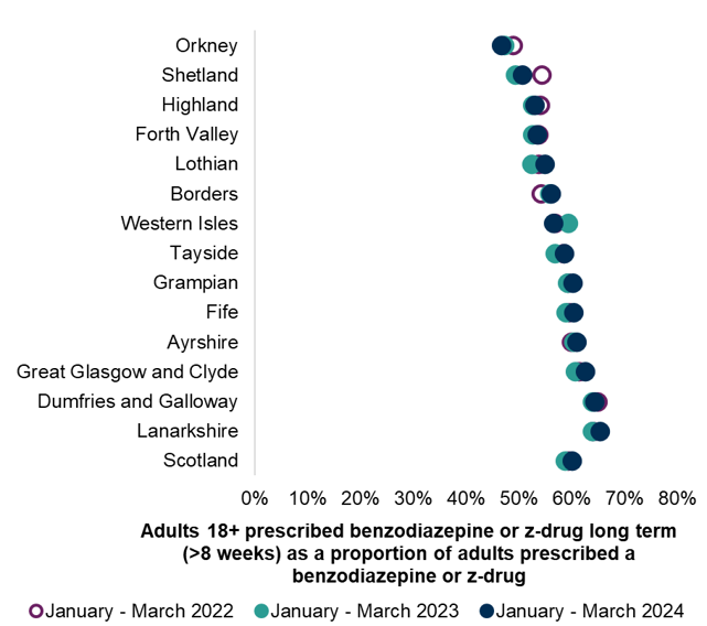 NTI: Adults (18+) prescribed a benzodiazepine or z-drug (B-Z) long term (>8 weeks) as a proportion of people prescribed a benzodiazepine or z-drug