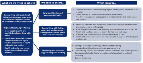People living with or at risk of frailty have improved experience of and access to person centred, co-ordinated health and social care.