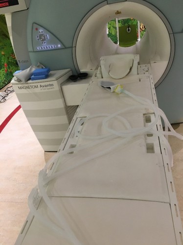 Administration of nitric oxide within the MRI scanner will be an uncommon procedure but cases will occasionally arise. Experience with patients in the past is that the delivery systems are awkward and the ergonomics have been poor in terms or equipment arrangement at the entrance to the scanning room. Alterations have been made in order that we can now use standard administration equipment and configure this in a way that will closely resemble a routine anaesthetic administration in MRI