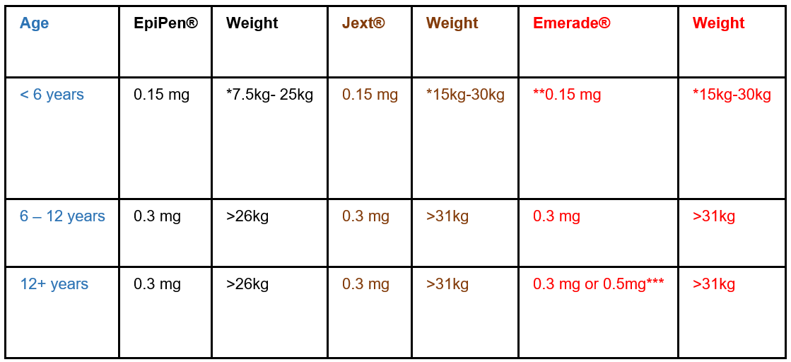 * Infants at HIGH risk of accidental exposure and who weigh more than 7.5 kg can be issued with a junior AAI (0.15mg). For infants less than 6 months of age, allergen avoidance measures should be effective in most cases.