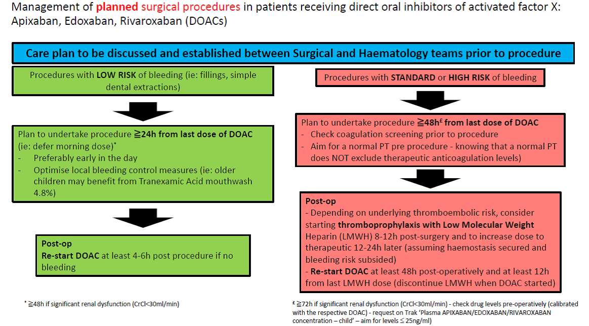 Management of bleeding and surgery in patients receiving Direct Oral Anticoagulants (DOACs):  Apixaban, Edoxaban, Rivaroxaban