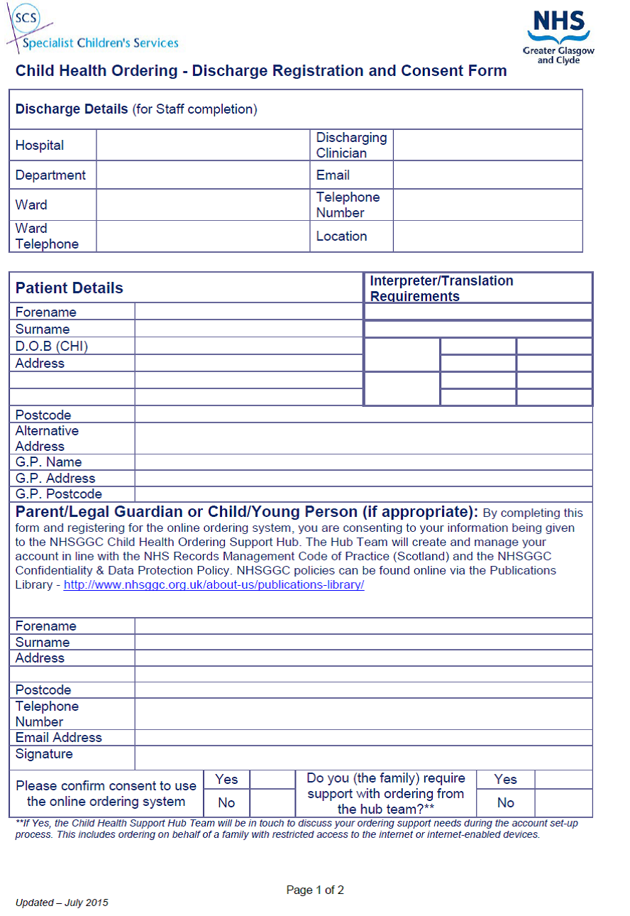 Appendix 4: Child Health Ordering Form
