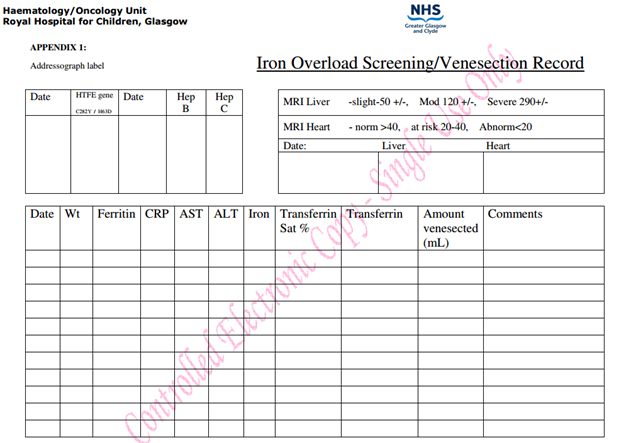 Appendix 1: Iron Overload Screening / Venesection Record