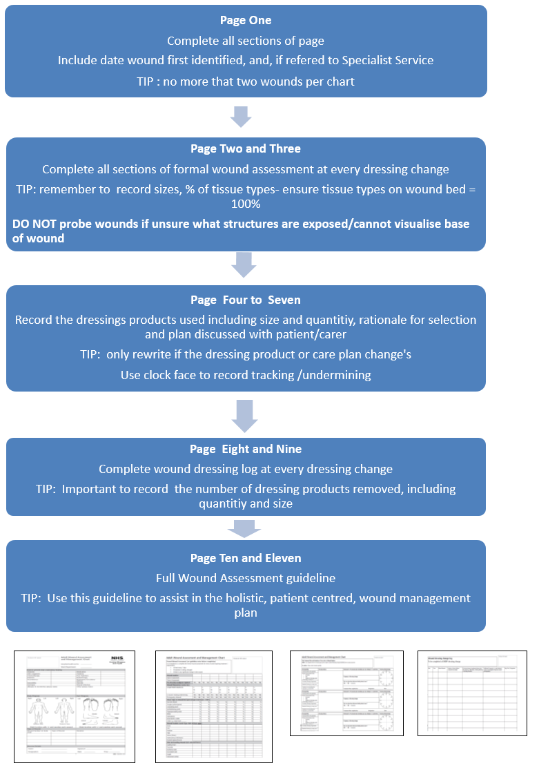 Completion of the wound assessment chart assists in the holistic assessment and management of patients requiring ongoing treatment of their wound(s), enhances communication and helps improve continuity of care.
