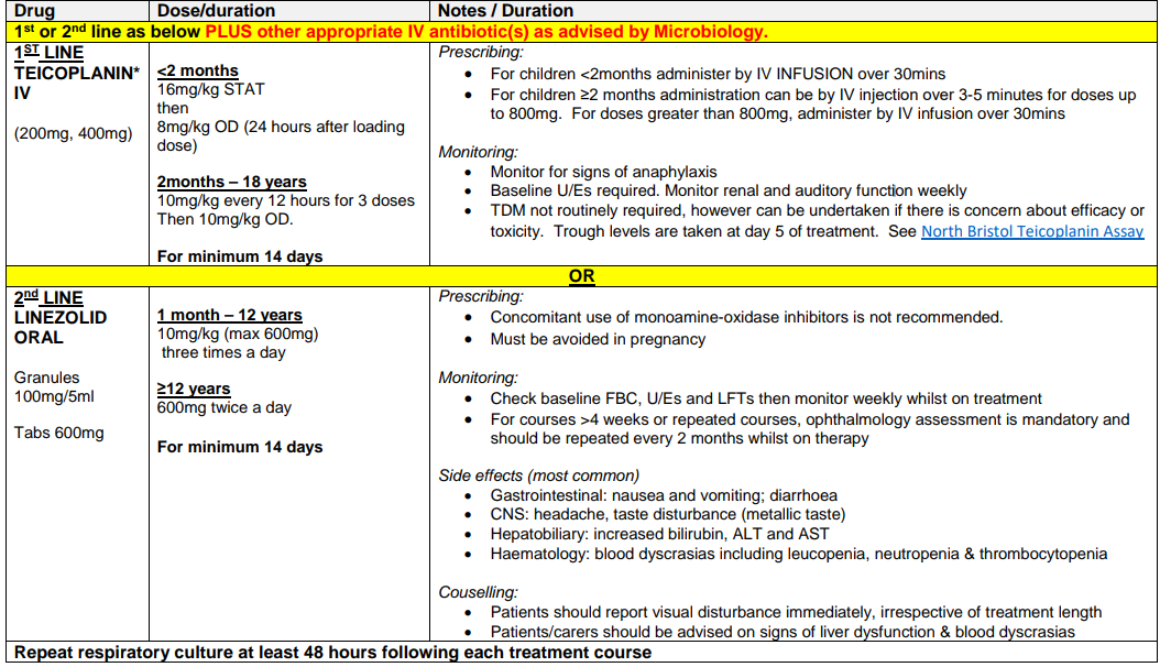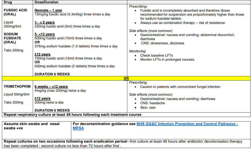 Regime A1: MRSA COLONISATION OF RESPIRATORY TRACT +/- SKIN /NOSE COLONISATION IN PATIENTS NOT CURRENTLY RECEIVING A CFTR MODULATOR