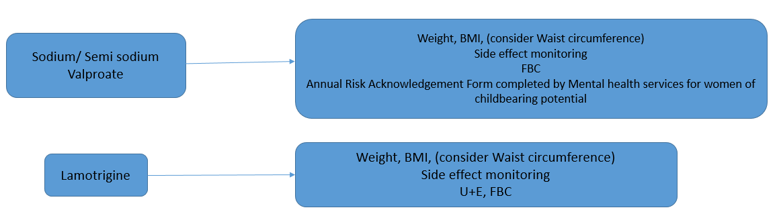 A recent BMJ article outlined guidance for monitoring drugs in people with bipolar disorder and supports the local discussion and agreement: Zaidi SHeald A HBelgamwar R BFryer A AMonitoring drug interventions in people with bipolar disorder