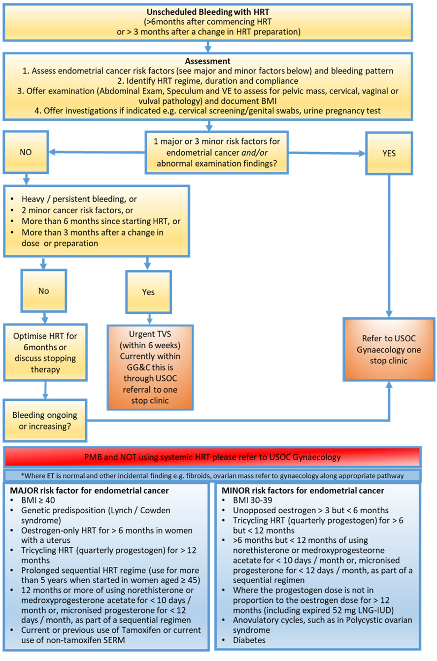Referral Pathways and initial management for women presenting with PMB and unscheduled bleeding while using HRT