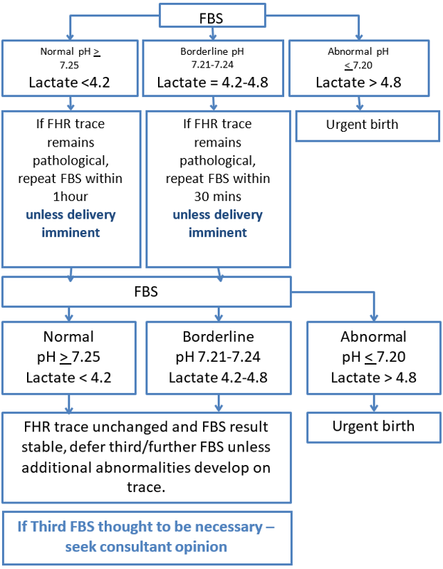 • If a FBS cannot be obtained and the cardiotocograph trace has not improved, expediting the birth will be advised.