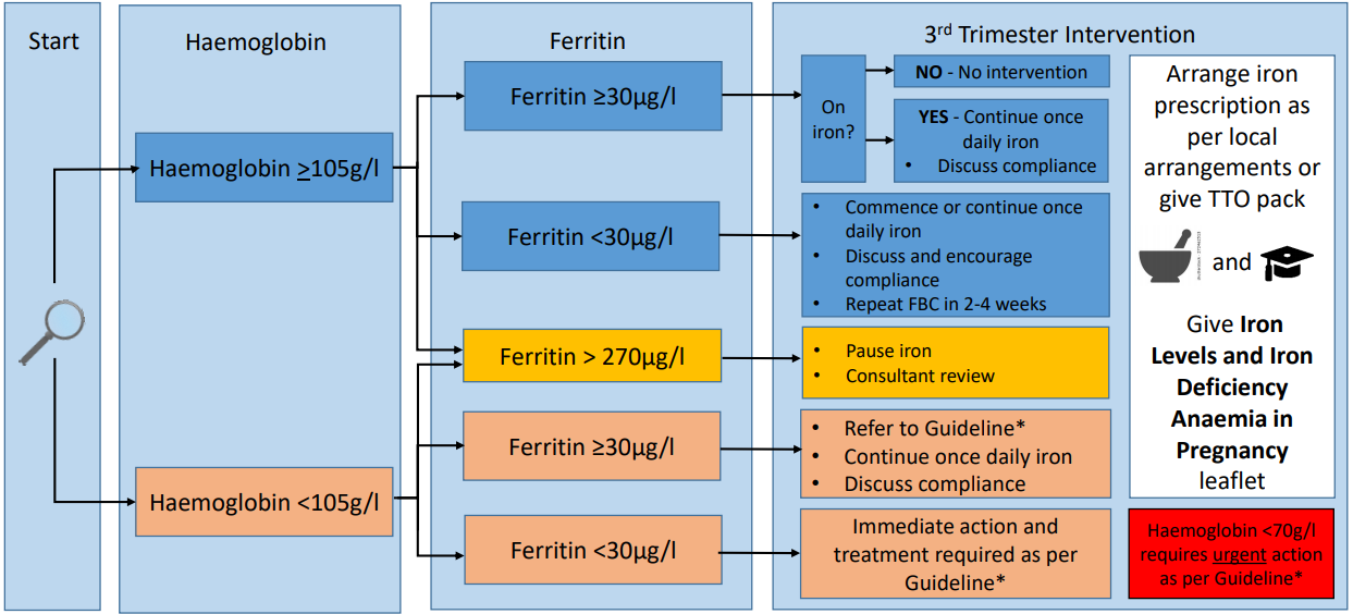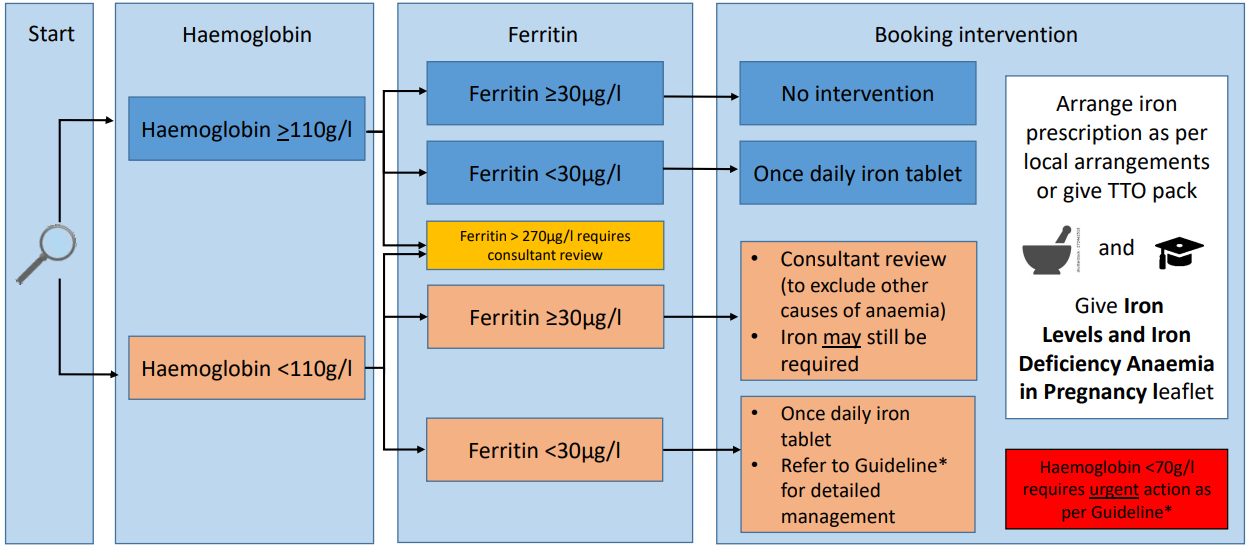This early intervention, to treat low iron stores, complements the existing Prevention and management of iron deficiency during pregnancy and the puerperium GGC Guideline.