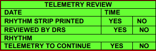 • Ensure a Rhythm strip is recorded from Ward 5 main monitor each 12 HOUR SHIFT and given to medical staff for review – this should also include a discussion / decision to continue telemetry.
