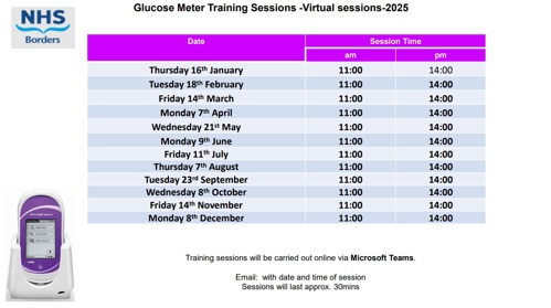To arrange the date and time of the session you would like to attend on Teams, email: bor.pointofcareservice@borders.scot.nhs.uk