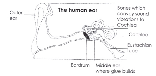 As well as the visible, outer parts, each ear has middle and inner parts. Glue ear mainly affects the middle part. Each ear looks like this