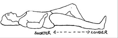Lying on the bed with your head on a pillow. Keep one leg bent- foot flat on the bed and the other one straight out on the bed with your toes facing the ceiling. Make the straight leg longer by pushing heel away from you. You should feel your hip getting a good stretch. Relax your leg slowly and then repeat this on the other side. Repeat this 5-10 times, 3 times a day.