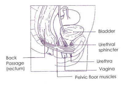 The pelvic floor muscles act as a sling and form the floor of the pelvis. They hold up and help to control the bladder, womb and the back passage. If they are weakened you may experience urinary leakage with coughing, sneezing or moving quickly (known as stress urinary incontinence). You may also be at risk of developing a prolapse.