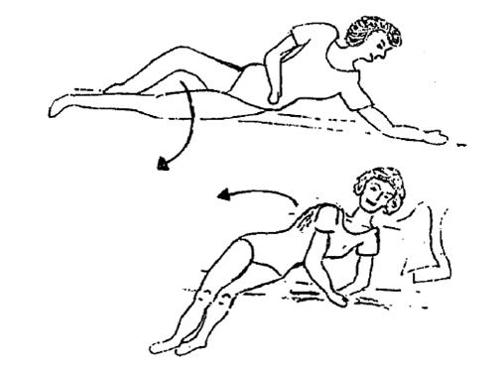 Lie in bed with your head on a pillow and your knees bent, feet flat. Pull in your tummy muscles and press the small of your back into the bed. Hold for up to five seconds and then slowly relax. Repeat this 5-10 times, three times a day. This can also help reduce trapped wind and help reduce any stiffness in your back.