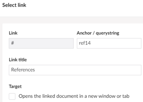 You can also link to content within a page (e.g. a specific paragraph) using the anchor () button. To do this, follow the instructions below: