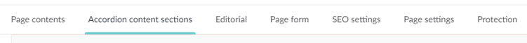 If a page contains a large volume of content, you can segment it into 'Accordion content sections', using the second tab on the  menu of Content pages and Guideline pages: