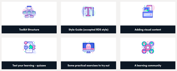 You can now progress to creating your  toolkit homepage.  Each top level section within your toolkit appears as a tile on the homepage, as below: