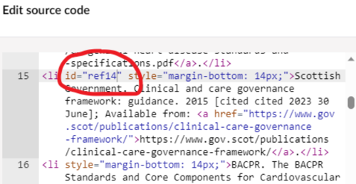 • In context, this could look like: <p id=”ref14”>Your text</p>