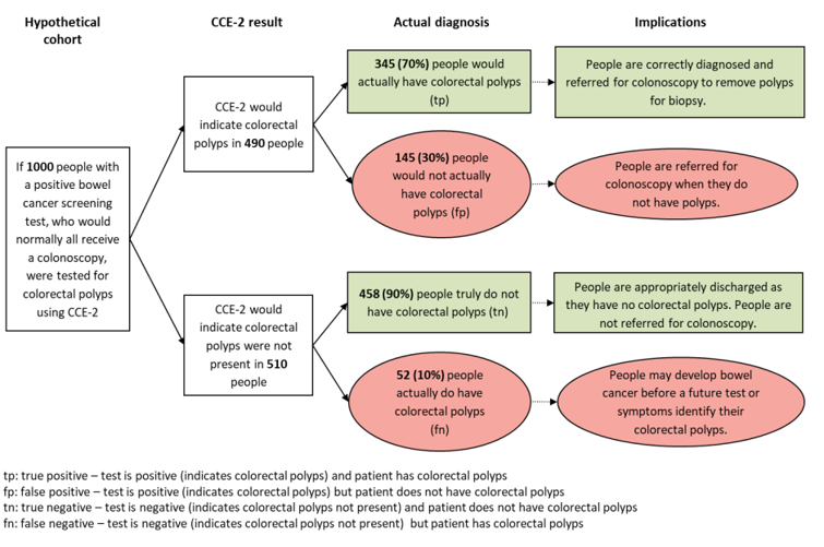These results, which are based on the best evidence available on the accuracy of CCE-2 for diagnosing colorectal polyps, are illustrated in the following diagram: