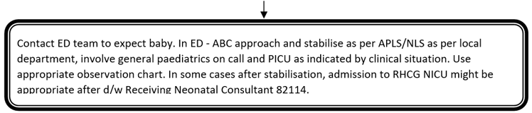 If a neonate is being directed straight to the RHCG ED, please also call to discuss the urgent situation with the RHCG ED team so the team are aware to expect this baby and what the urgent concerns are.