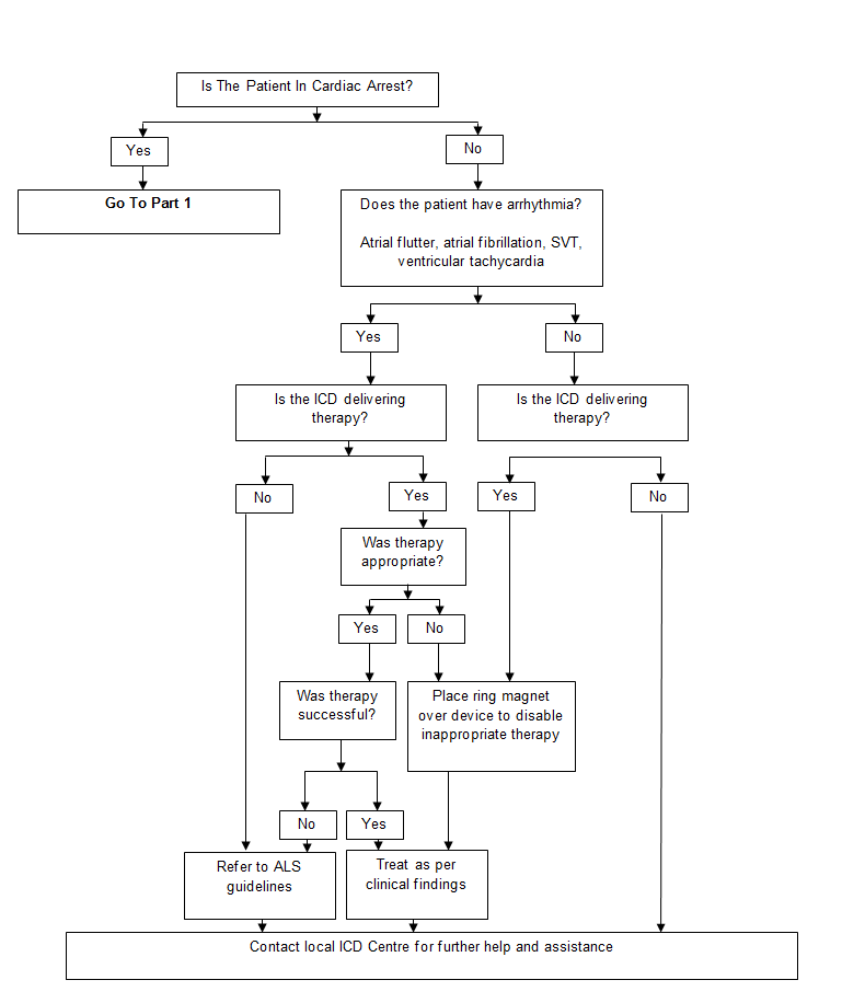 The algorithm below is to provide guidance to community teams in the acute management of patients who are presenting acutely unwell with an arrhythmia and have an ICD in situ.