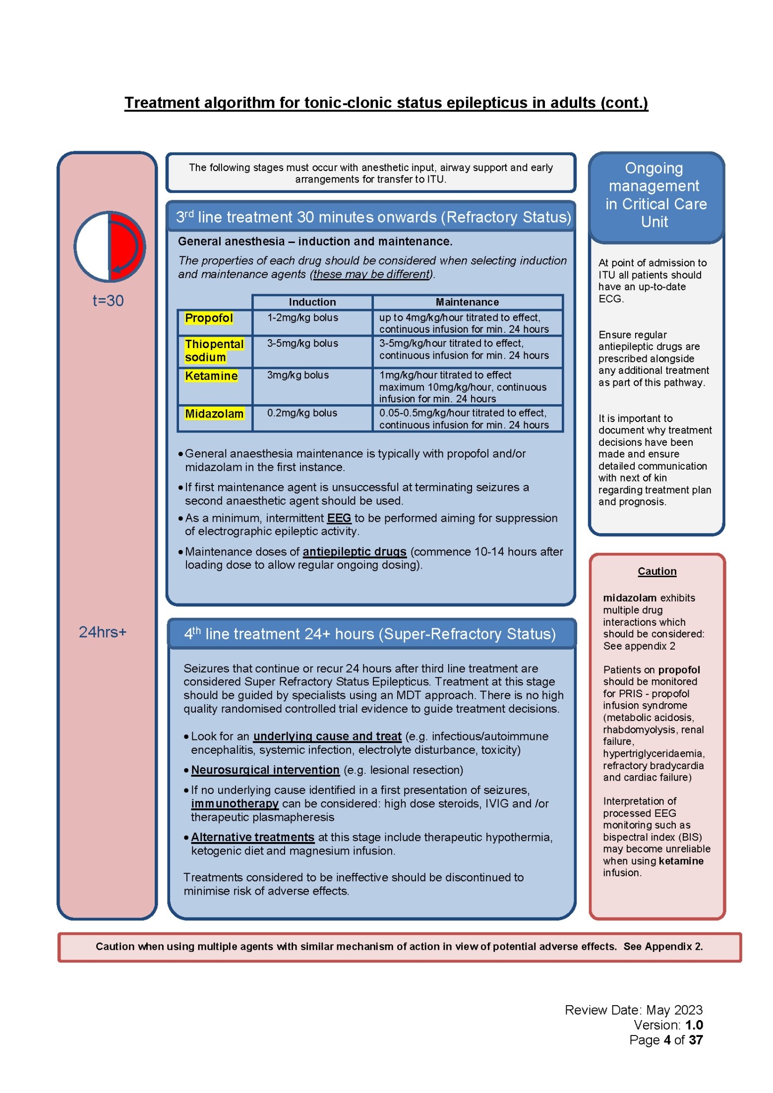 • If at any point more than 30 minutes have elapsed since seizure onset, general anaesthesia should not be delayed and third line drug treatments commenced.