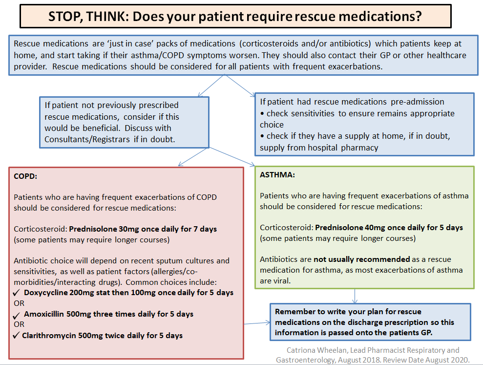 • Considering what follow up the patient requires (if any). All discharges should be referred to the community respiratory team (nhsh.communityrespiratoryteam@nhs.scot). If a patient is having frequent exacerbations then community support may help optimise their care and may provide the opportunity to have anticipatory care plan discussions.