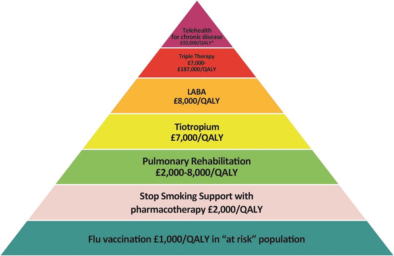 Widely used for its impactful message about the comparative value of interventions for COPD that rebalances the value accorded to flu vaccination, stop smoking as a treatment, pulmonary rehabilitation, inhaled medicines and telemedicine using cost per quality adjusted life year (QALY).