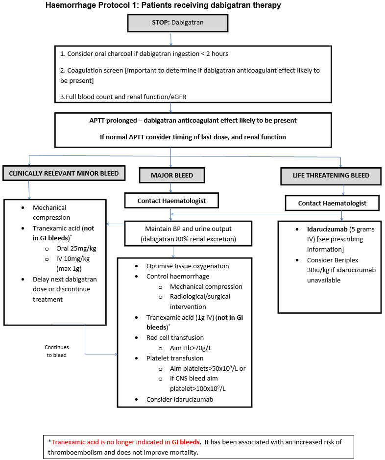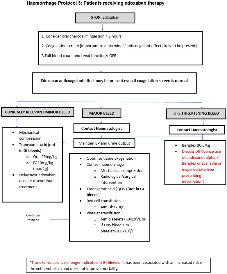 - Bleeding that is symptomatic and occurs in a critical area or organ, such as intracranial, intraspinal, intraocular, retroperitoneal, pericardial, in a non-operated joint, or intramuscular with compartment syndrome, assessed in consultation with the surgeon.
