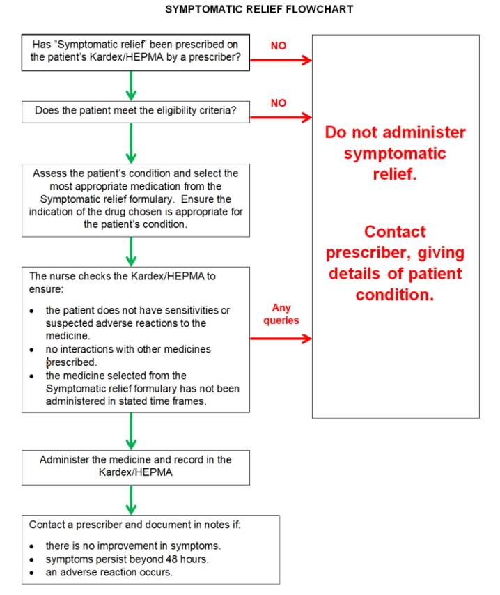 - Senior Charge Nurse for the inpatient area is in agreement that the Symptomatic Relief Formulary may be used.